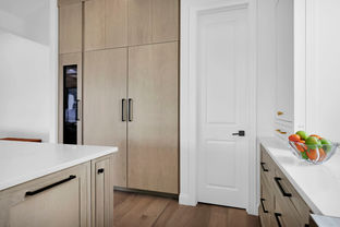 Inset door style with a mix of white oak and painted cabinetry. Features all wood construction, LED lighting above and below, very large, deep drawers to house appliances, coffee station with roll out trays, storage on back side of island, tray dividers, double trash can roll outs, custom hood, adjustable shelves in both towers as well as island.